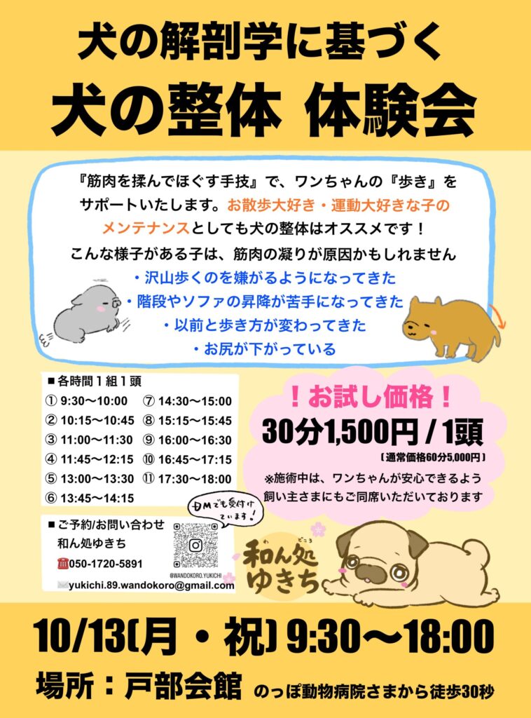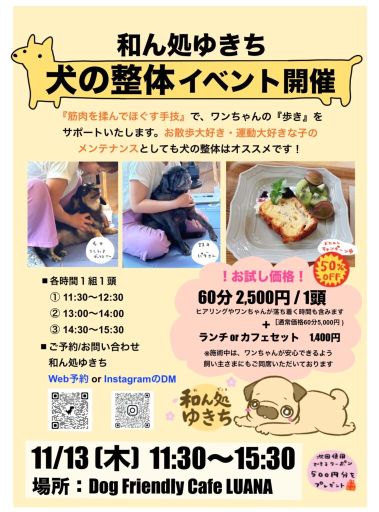 犬の整体 イベント予約フォーム [和ん処ゆきち]